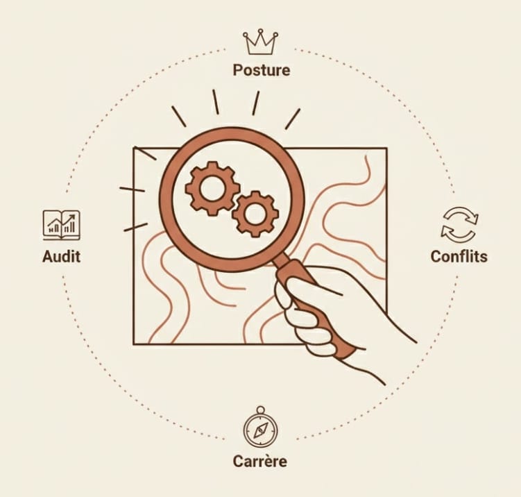 Mon rôle : vous apporter la clarté nécessaire pour décoder les règles invisibles de votre environnement et transformer vos zones d'ombre en leviers de décision.